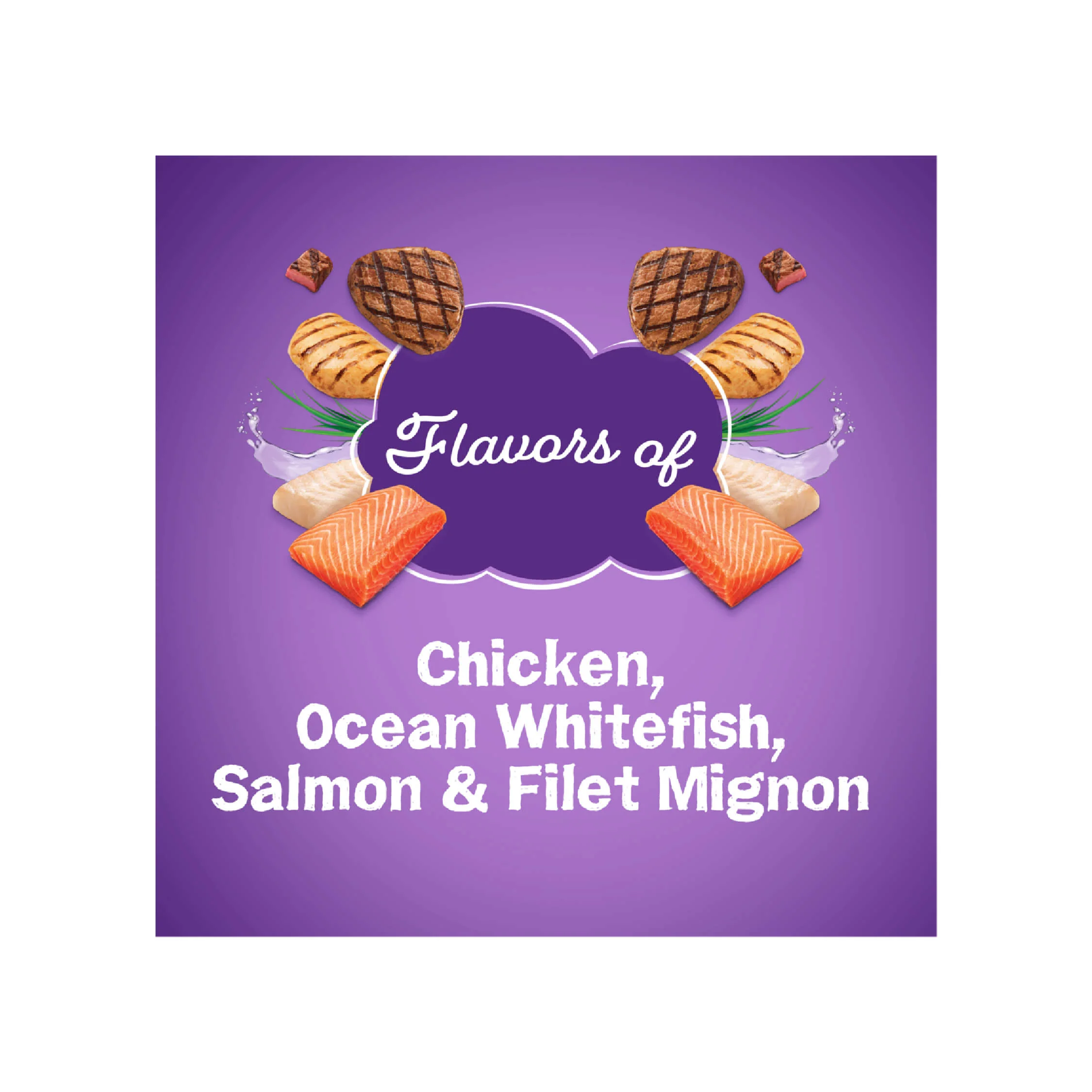 It’s the best of land and sea together with the flavors of chicken, ocean whitefish, salmon & filet mignon.