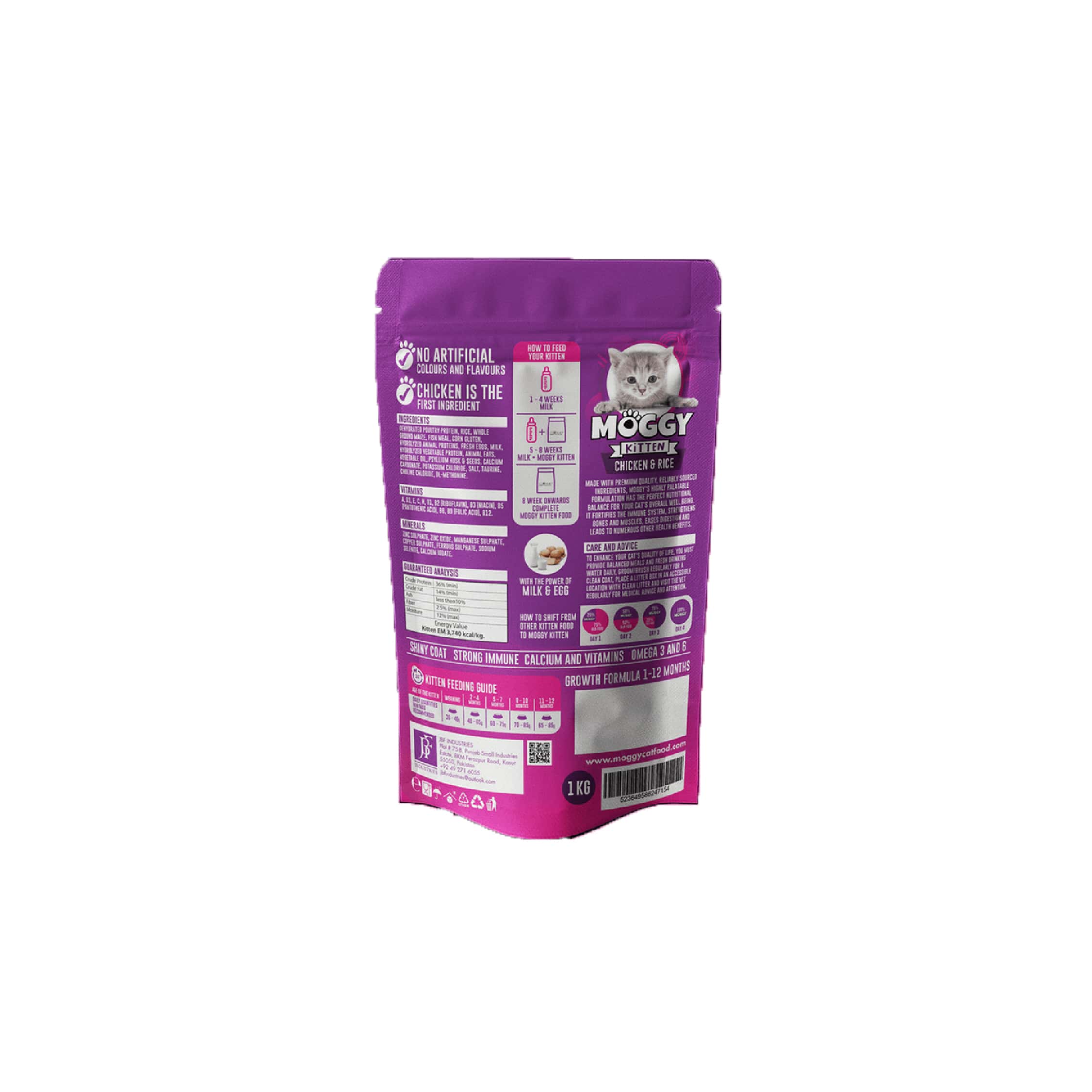 Moggy Kitten Dry Food has been formulated for felines between 1 and 12 months of age. Its specialized growth formula contains all the nutritional requirements to support growth, while the delectable combo of chicken and rice ensures that your kitten enjoys every bite.